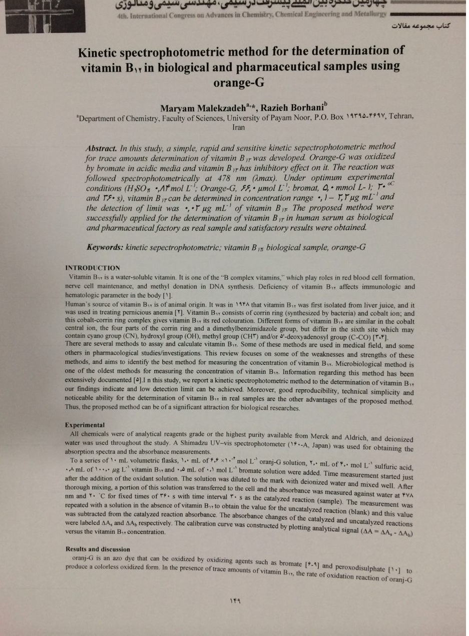 (كاربردي) يك روش بديع براي اندازه گيري همزمان و پاراستامل با استفاده از روشهاي پتانسيومتري-سينتيكي و كمومتريكس